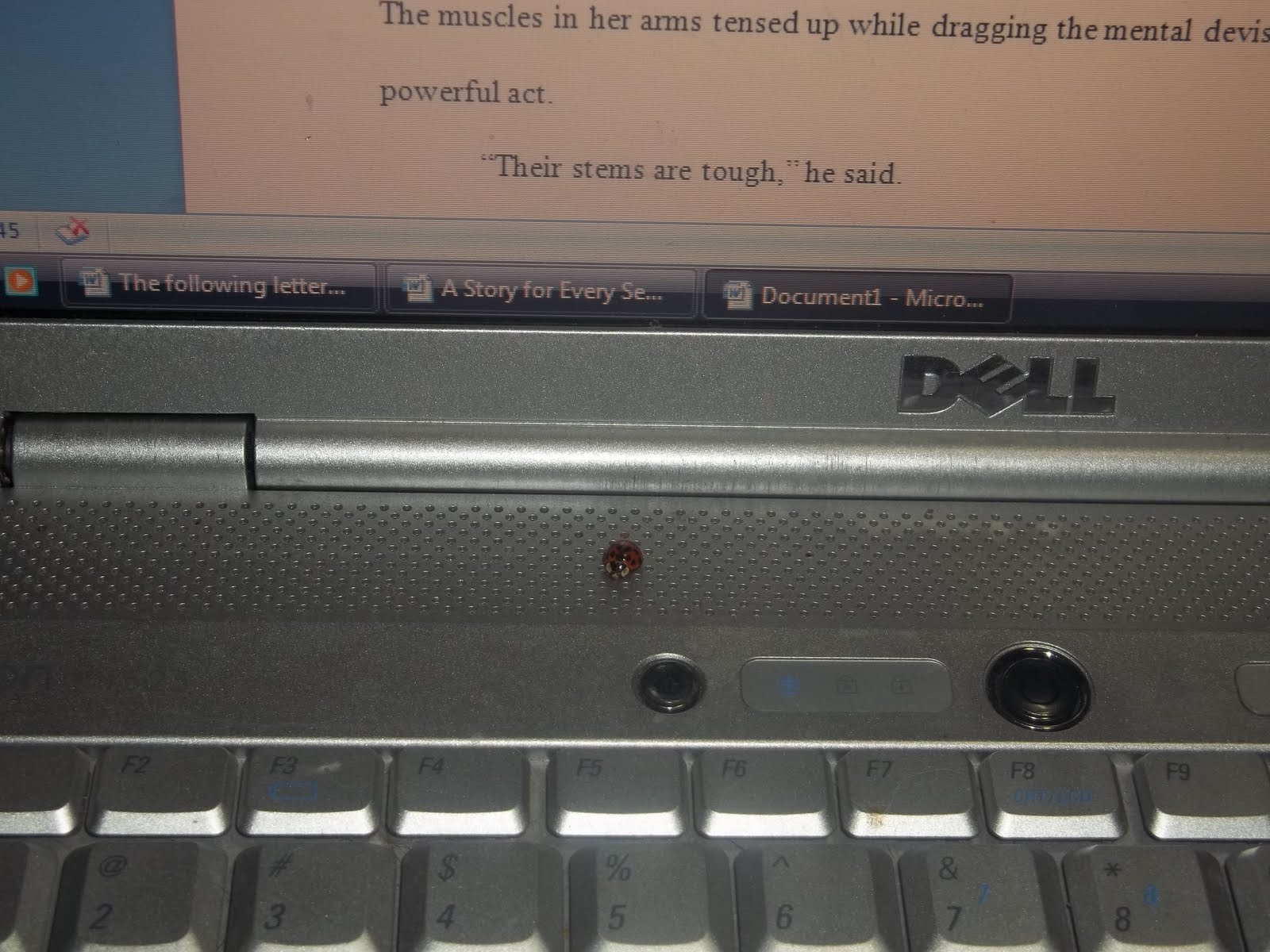 Here’s your daily dose of cuteness. Last night, when I was writing late at night, something fell on my hand. It was a ladybug! Super cute! It crawled off my hand and sat on my keyboard for two hours while I typed away.